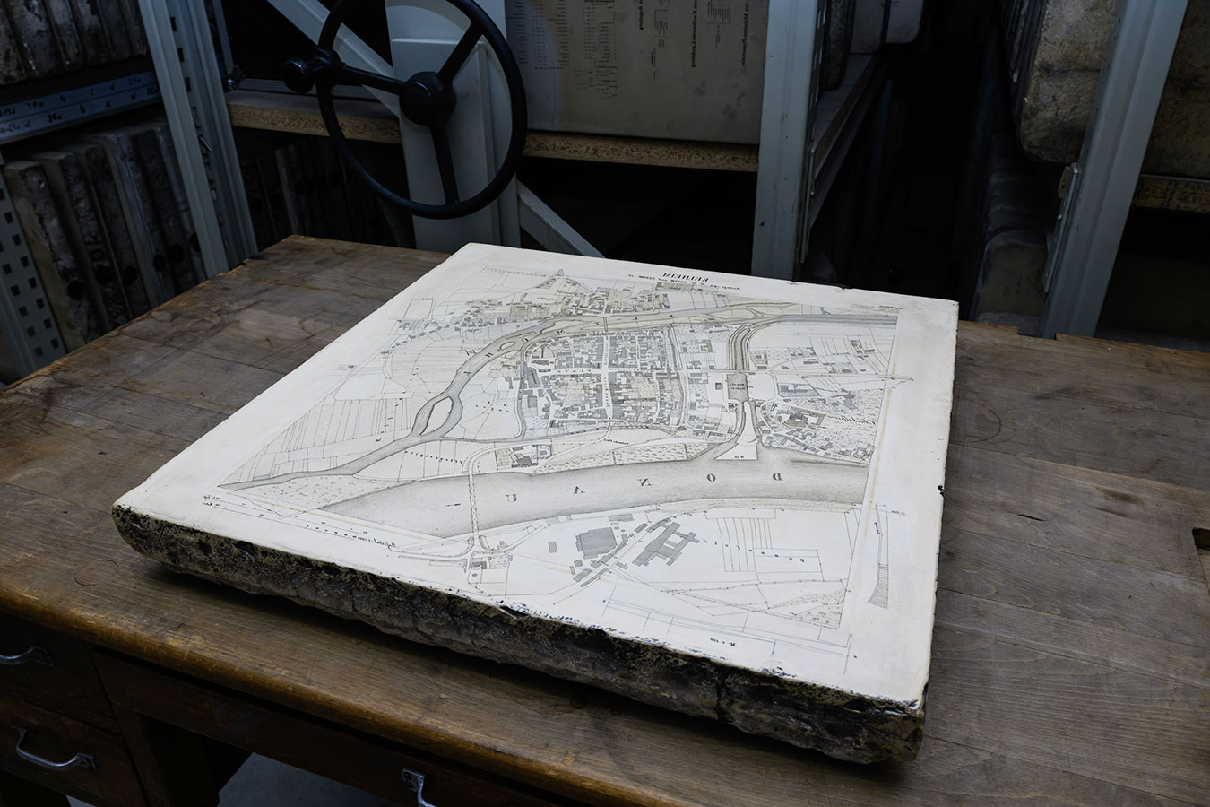 Die Original-Steinplatten der ersten flächendeckenden Grundstücksvermessung Bayerns werden im „Steinkeller“ des Landesamts für Digitalisierung, Breitband und Vermessung aufbewahrt und können genauso wie die Druckhistorische Werkstätte, die an die „Lithographische Anstalt“ erinnert, nach vorheriger Anmeldung unter www.ldbv.bayern.de/aktuell/ausstellungen/ im Rahmen einer Führung besichtigt werden.